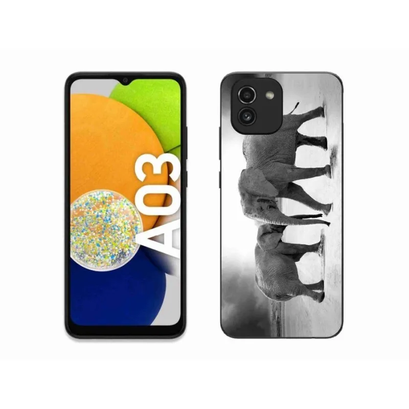 Gél borítás mmCase Samsung Galaxy A03 - fekete és fehér elefántokhoz