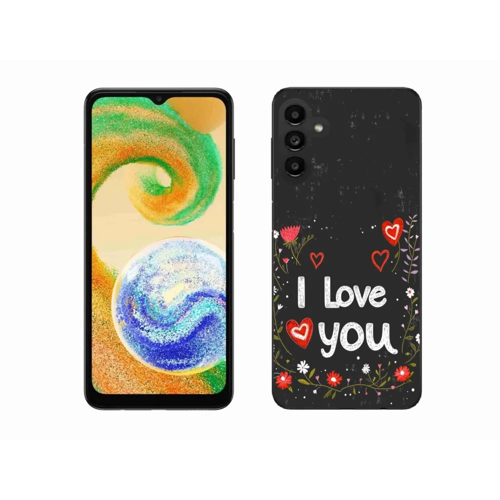 Rugalmas zselés tok mmCase kép Samsung Galaxy A04s - I love you fekete háttérrel