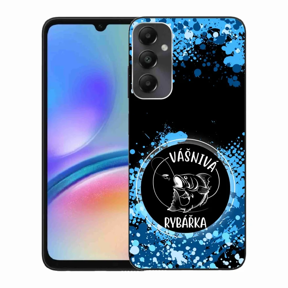 Rugalmas zselés tok mmCase a kép a Samsung Galaxy A05s - szenvedélyes halásznő fekete háttérrel