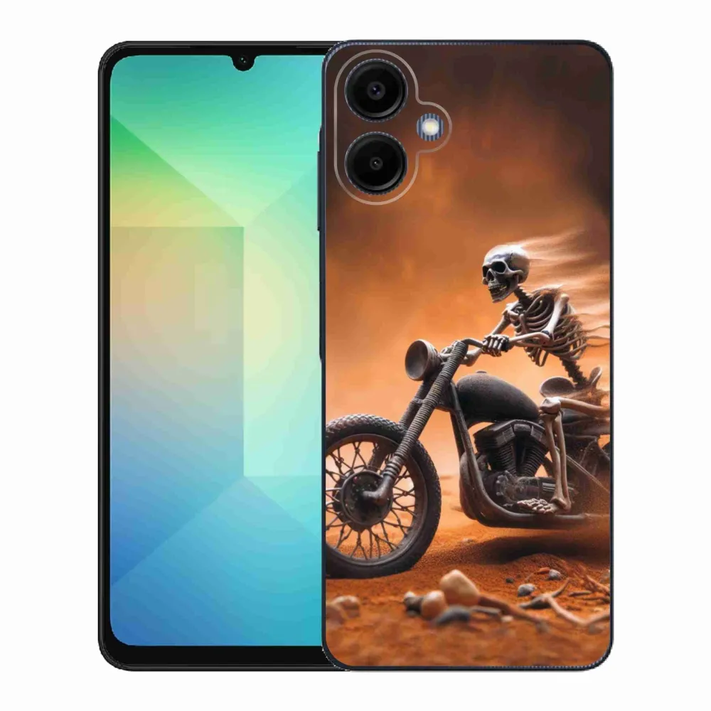 Rugalmas zselés tok mmCase kép Samsung Galaxy A06 4G - csontváz egy motorkerékpárra