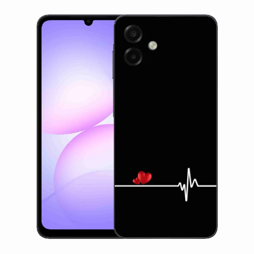 Rugalmas zselés tok mmCase kép Samsung Galaxy A07 4G - szív és szívverés fekete háttérrel