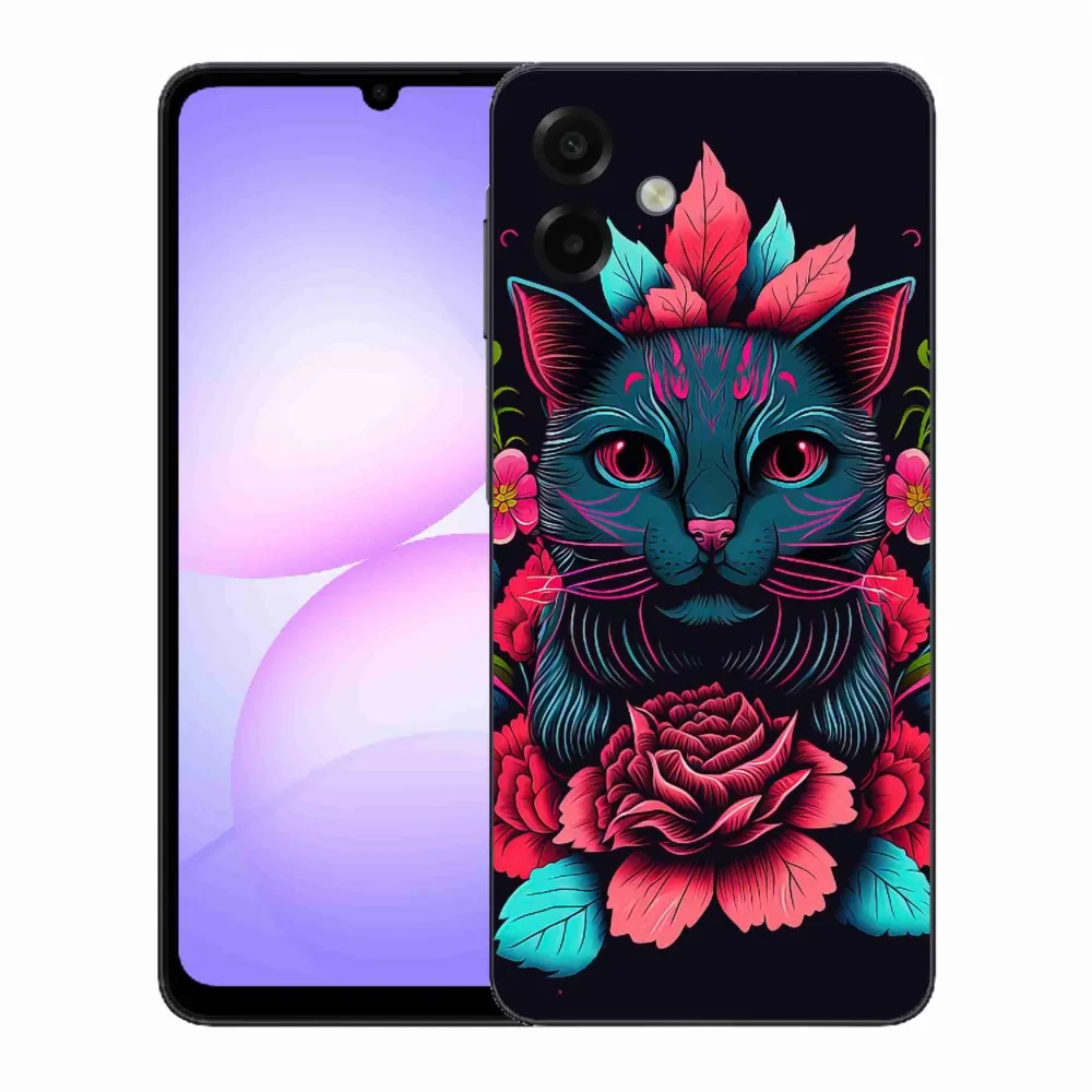 Gél borítás mmCase Samsung Galaxy A07 4G - virágok és macska