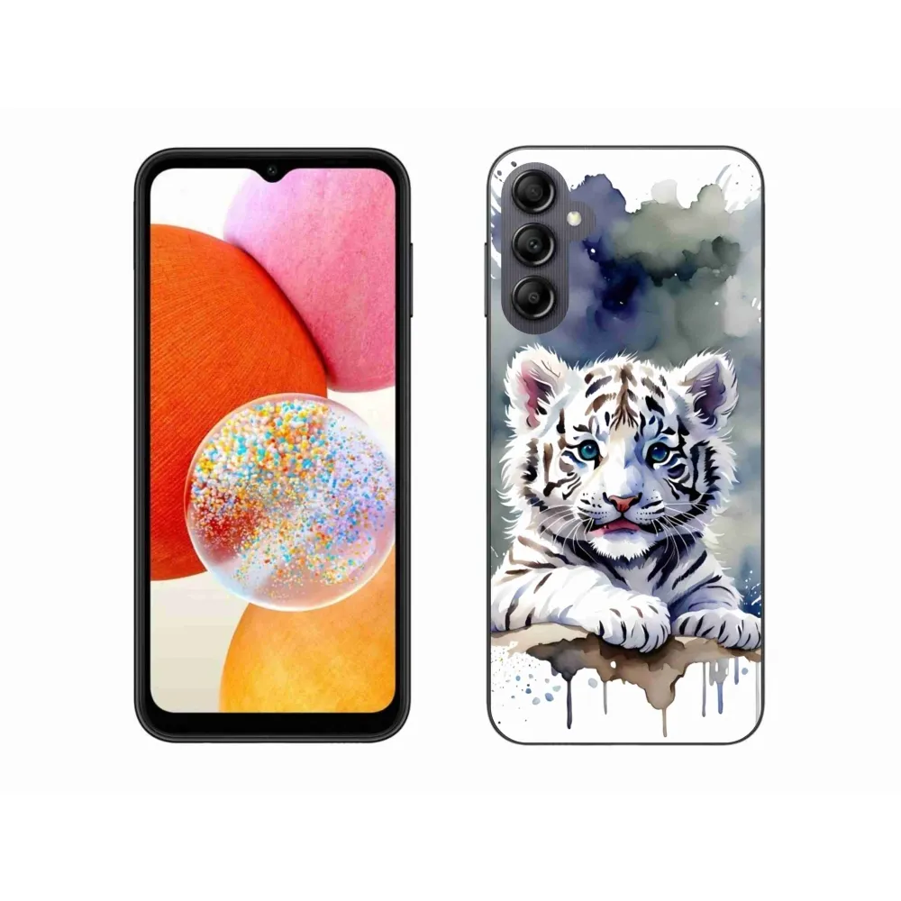 Rugalmas zselés tok mmCase a Samsung Galaxy A14 4G/5G képével - fehér tigriskölyök