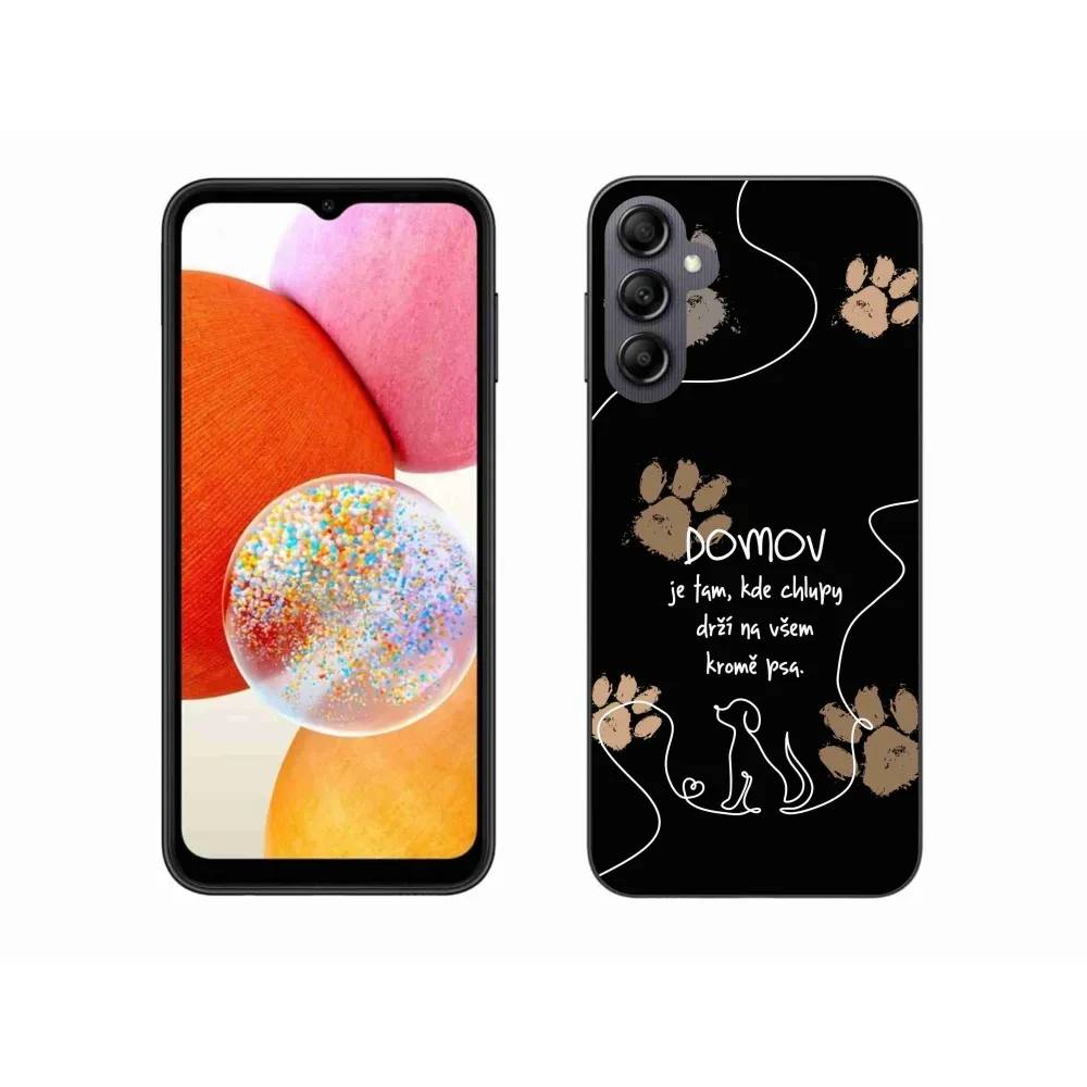 Gél borítás mmCase Samsung Galaxy A14 4G/5G készülékhez - kutya motívum fekete háttérrel