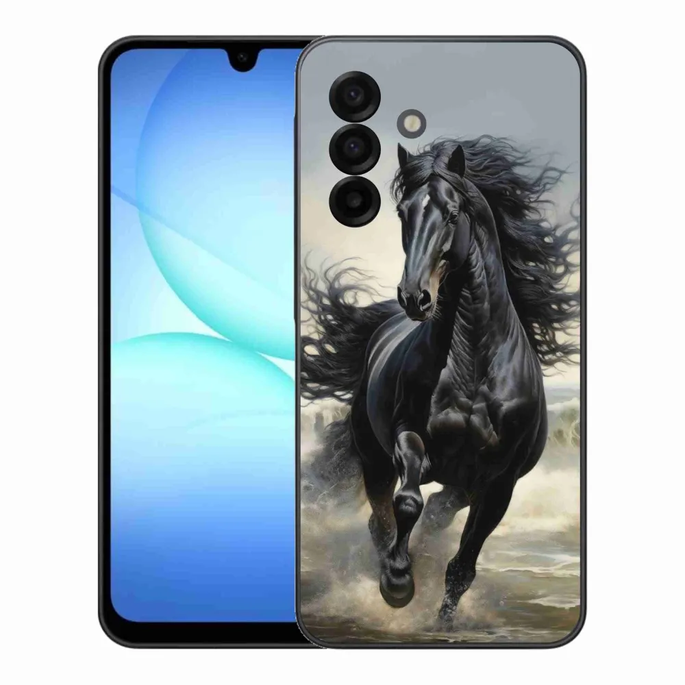 Rugalmas kesztyűhuzat mmCase kép Samsung Galaxy A17 4G/5G - futó fekete ló - Samsung Galaxy A17 4G/5G - futó fekete ló