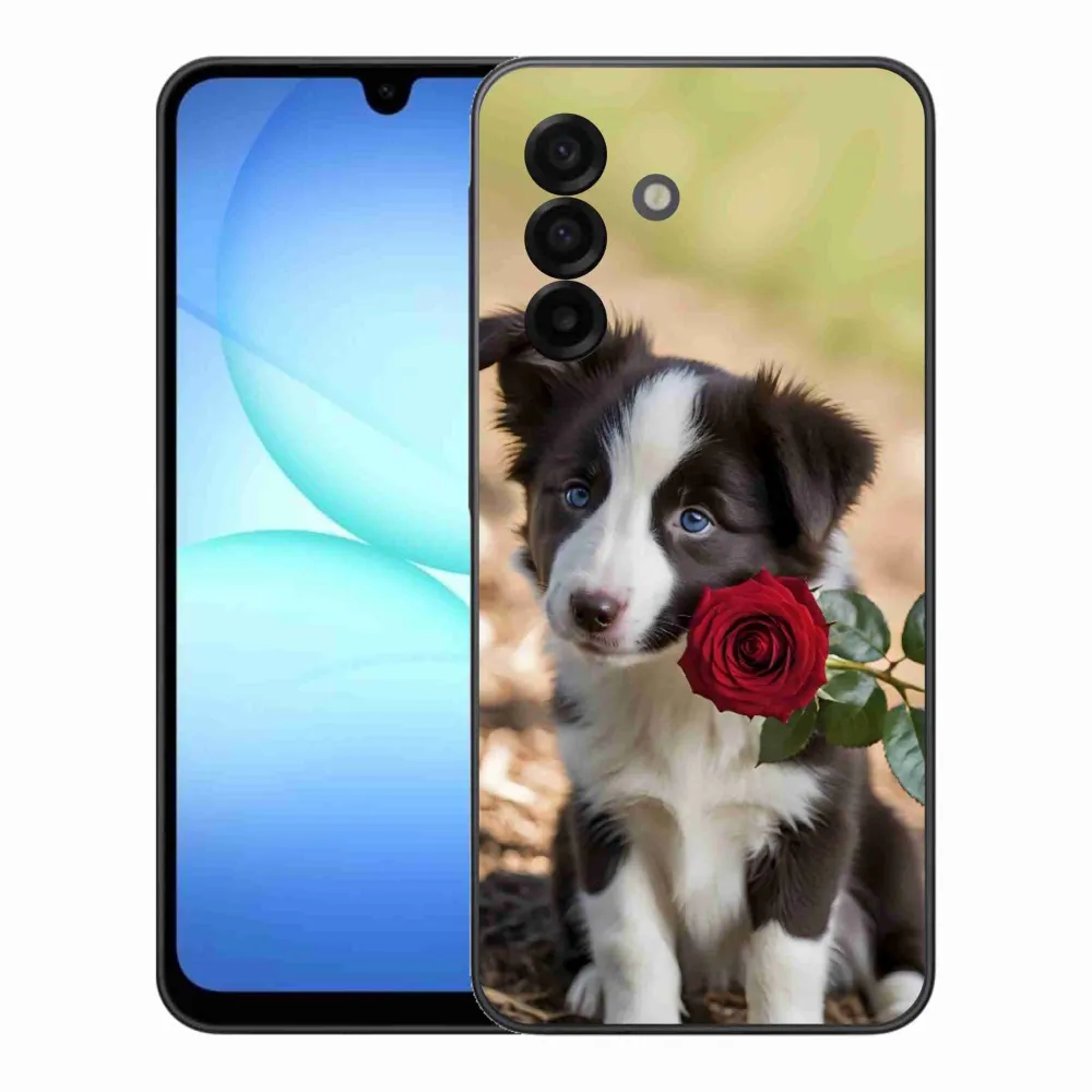 Rugalmas kesztyűhuzat mmCase a Samsung Galaxy A17 4G/5G képével - aranyos border collie rózsával