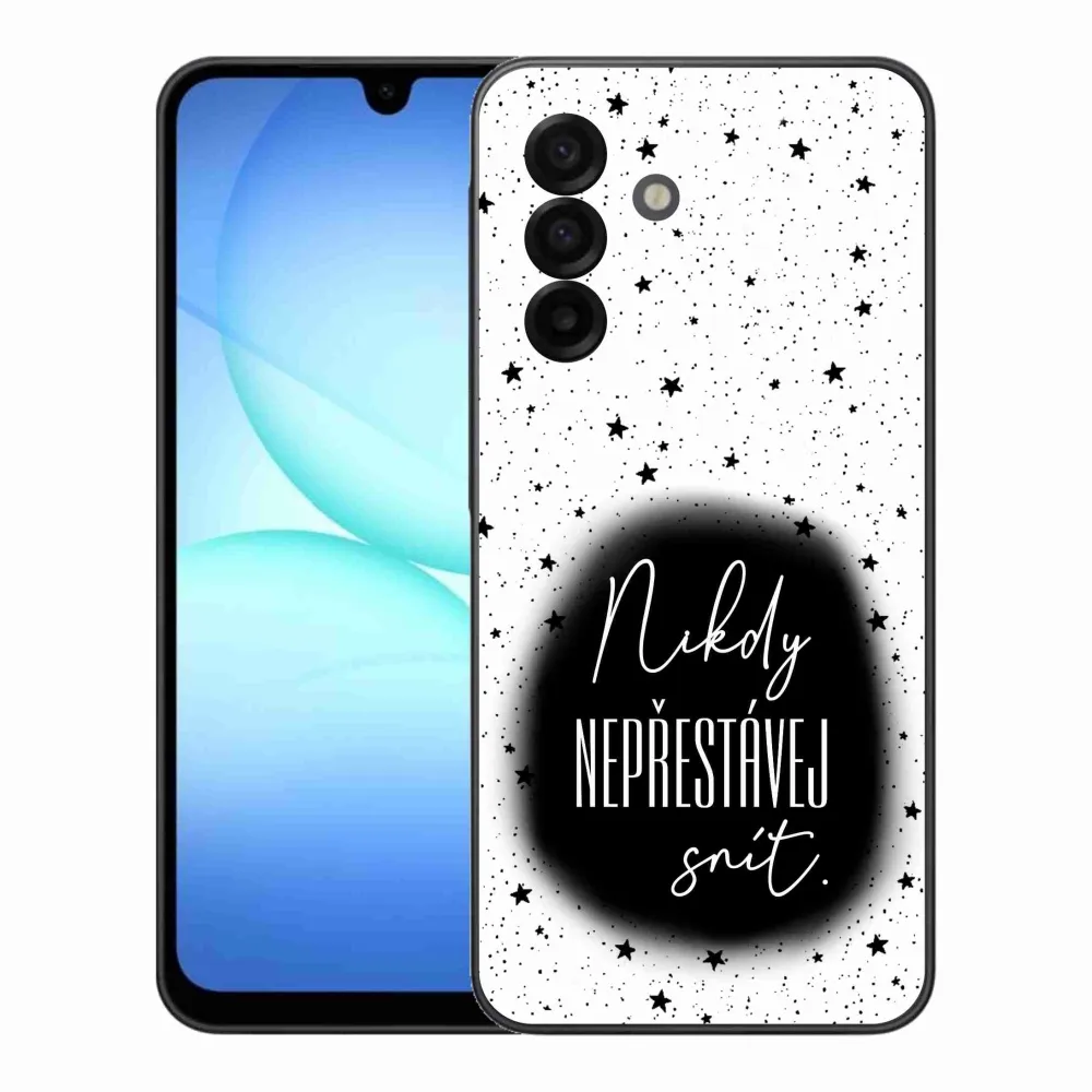 Rugalmas zselés tok mmCase a Samsung Galaxy A17 4G/5G képével - idézet 1 fekete és fehér háttérrel