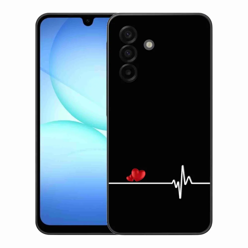 Rugalmas zselés tok mmCase a Samsung Galaxy A17 4G/5G képével - szív és szívverés fekete háttérrel