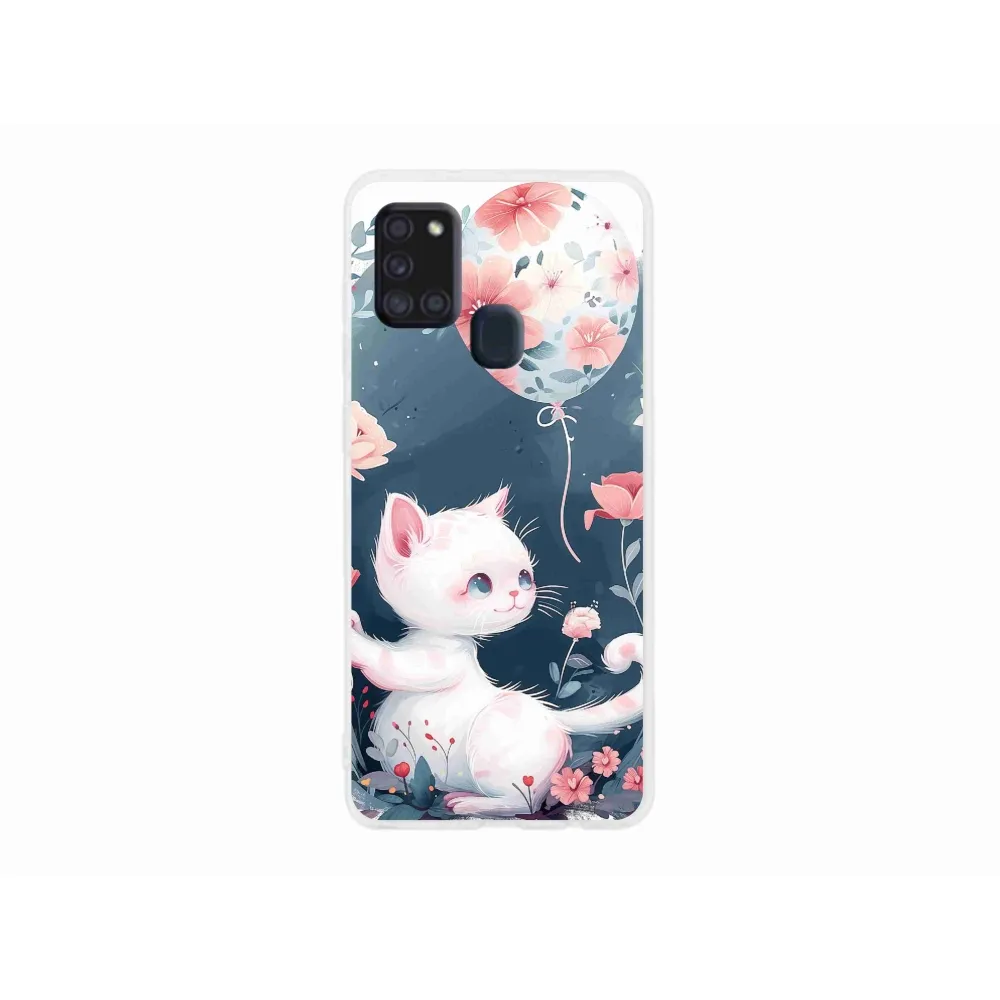 Gél borítás mmCase Samsung Galaxy A21s készülékhez - cica lufival