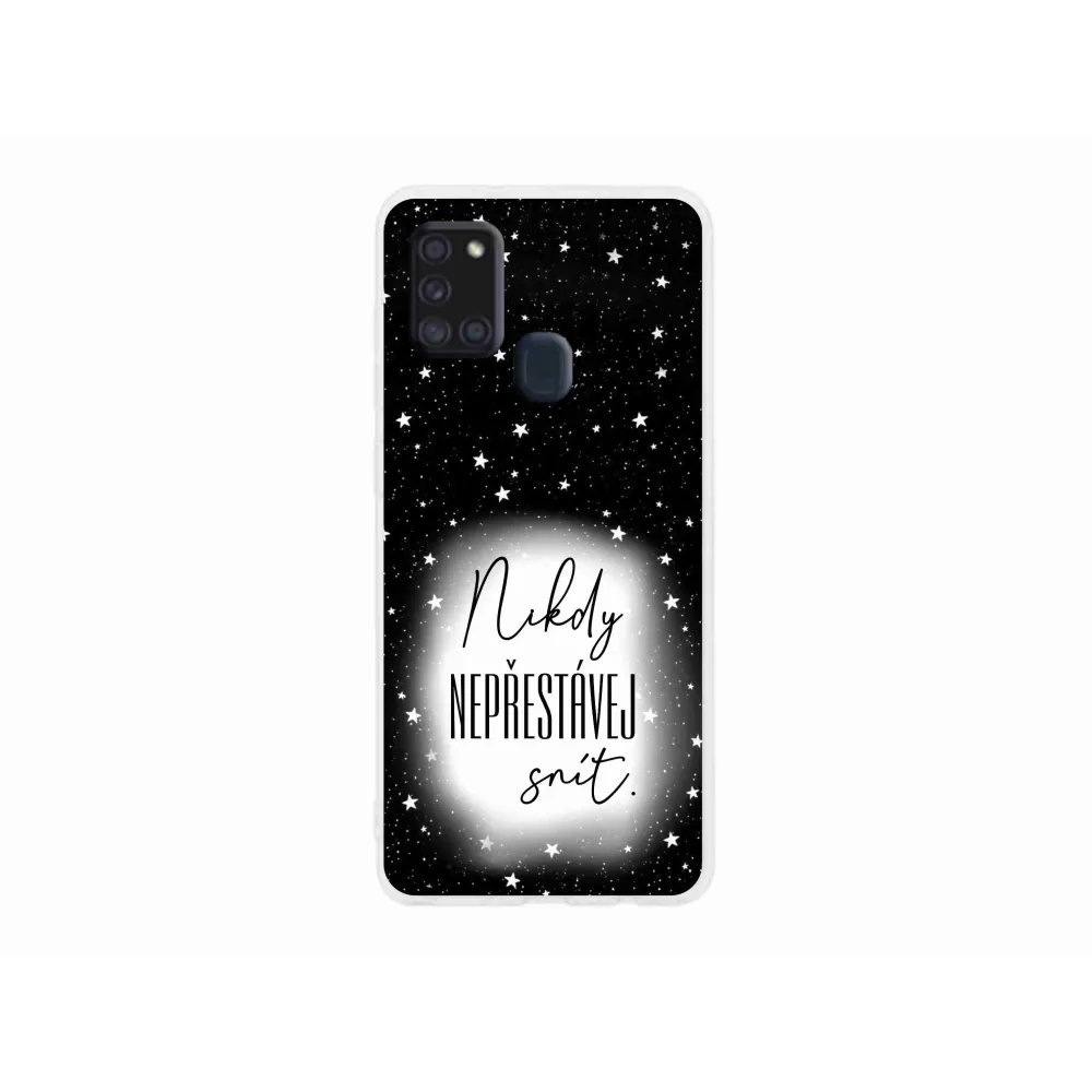 Gél borítás mmCase Samsung Galaxy A21s készülékhez - idézet 1 fehér és fekete háttérrel
