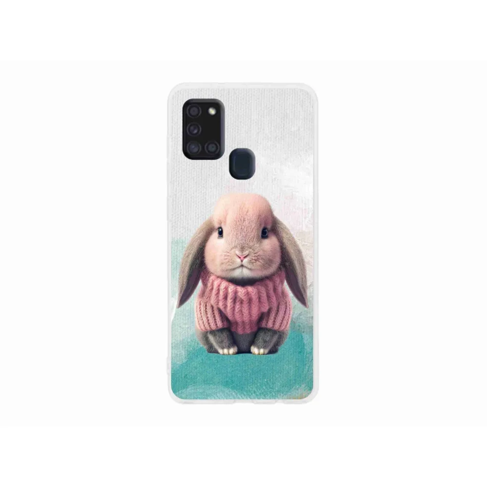 Gél borítás mmCase Samsung Galaxy A21s készülékhez - nyúl pulóverben