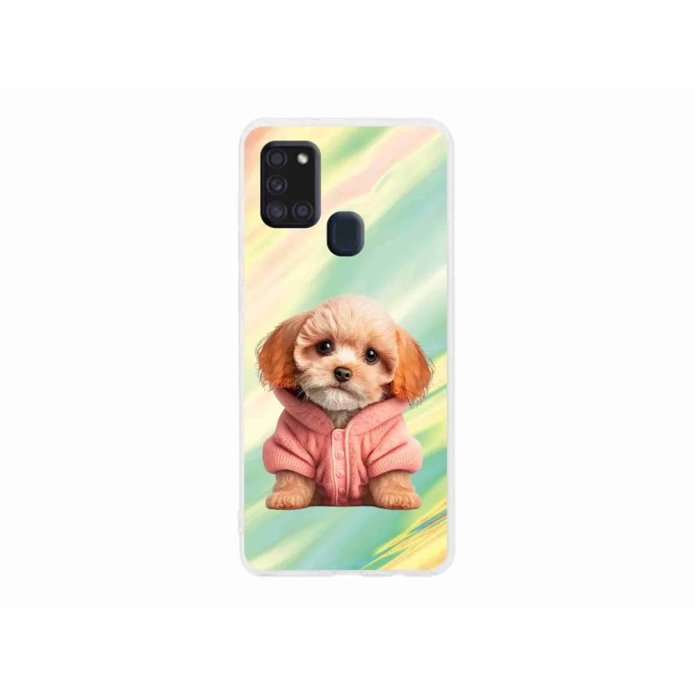 Rugalmas zselés tok mmCase kép Samsung Galaxy A21s - pulóveres kiskutya - Samsung Galaxy A21s - pulóveres kiskutya