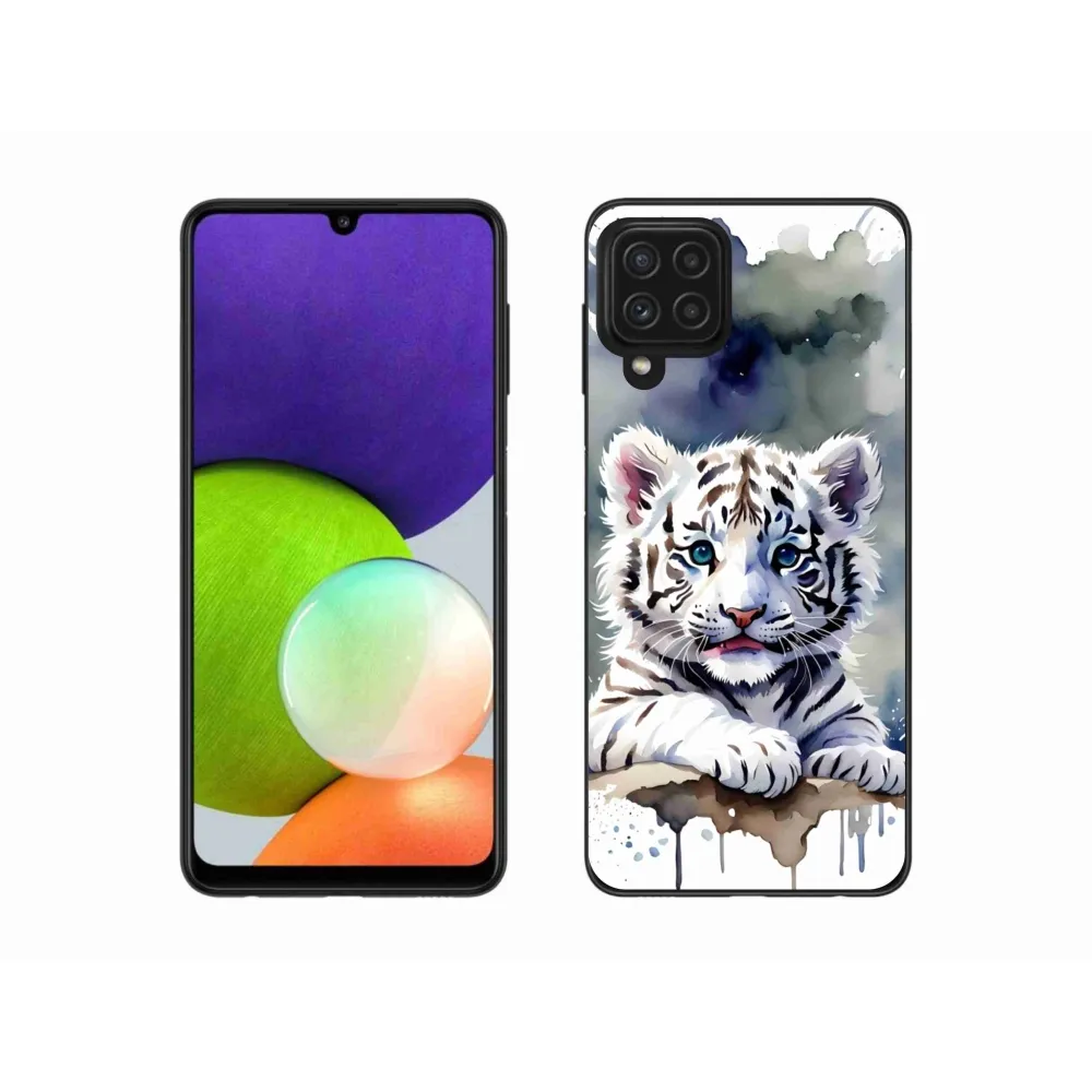 Rugalmas zselés tok mmCase a Samsung Galaxy A22 4G képével - fehér tigriskölyök