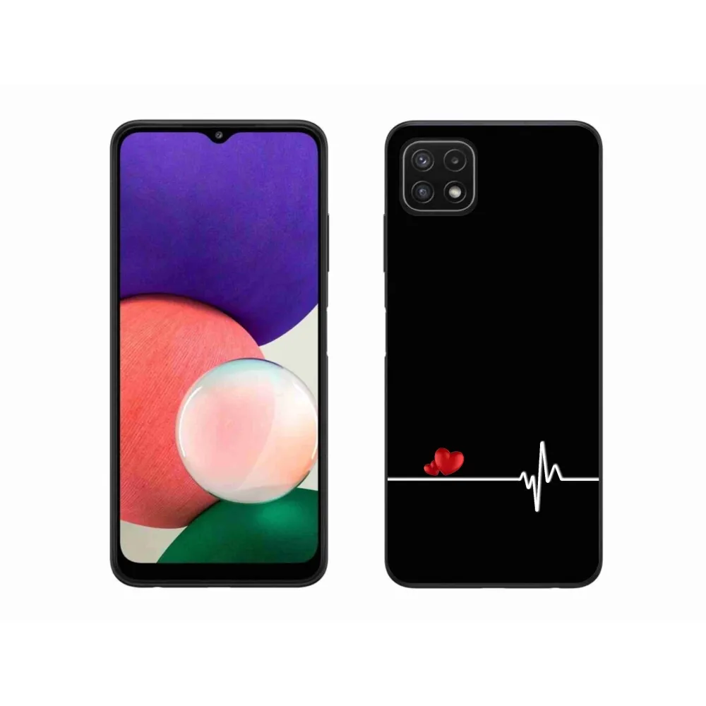 Rugalmas zselés tok mmCase kép Samsung Galaxy A22 5G - szív és szívverés fekete háttérrel