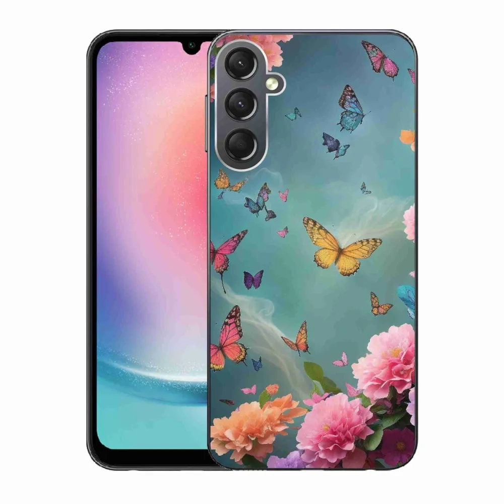 Rugalmas zselés tok mmCase kép a Samsung Galaxy A24 - színes virágok és pillangók