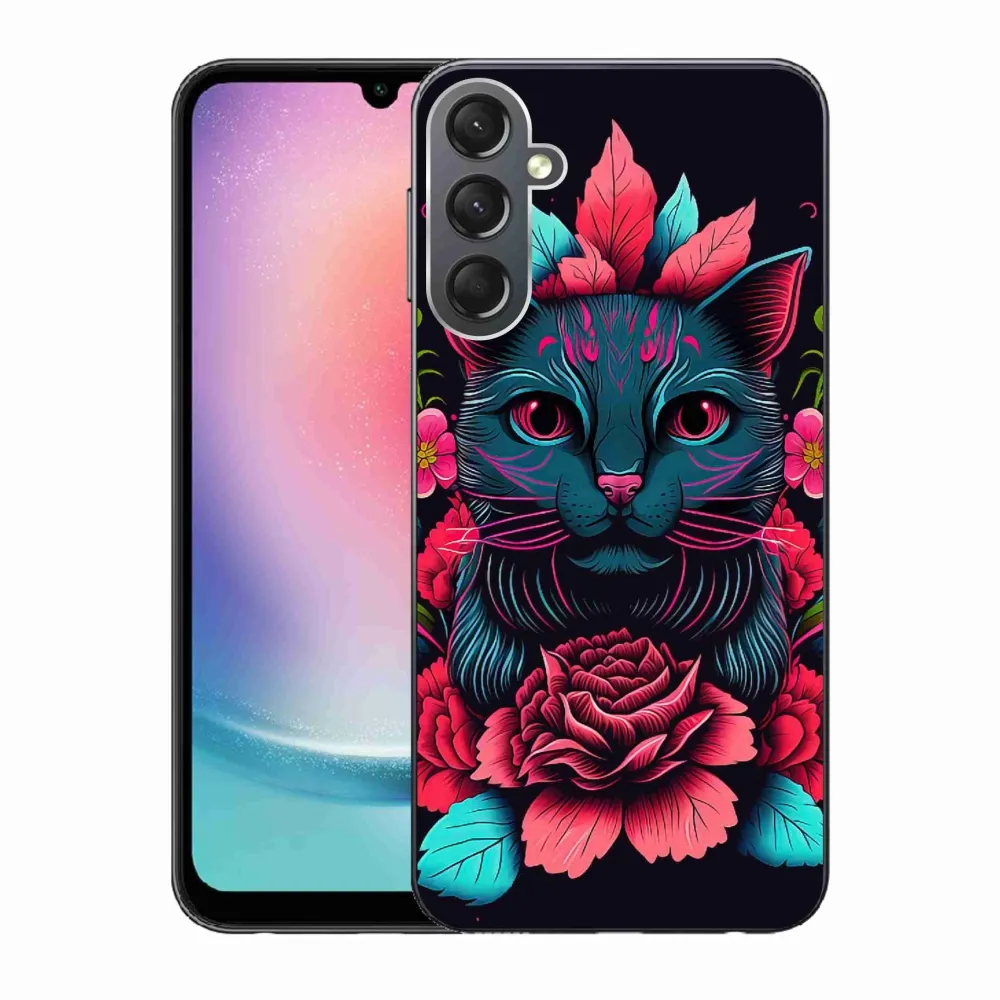 Rugalmas zselés tok mmCase kép Samsung Galaxy A24 - virágok és macska