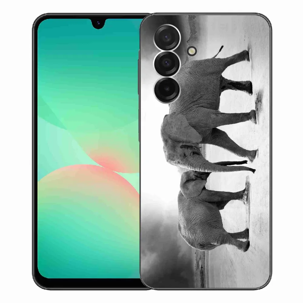 Rugalmas zselés tok mmCase a Samsung Galaxy A26 5G képével - fekete és fehér elefántok