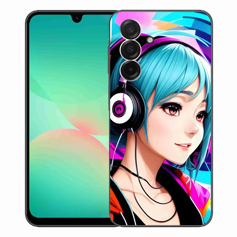 Rugalmas gél tok mmCase a Samsung Galaxy A26 5G képével - lány fejhallgatóval