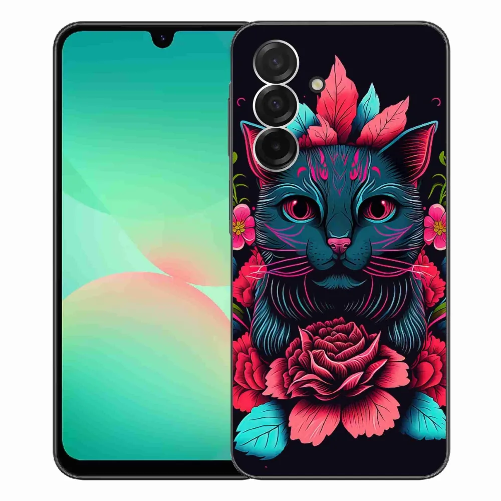 Rugalmas zselés tok mmCase a Samsung Galaxy A26 5G képével - virágok és macska