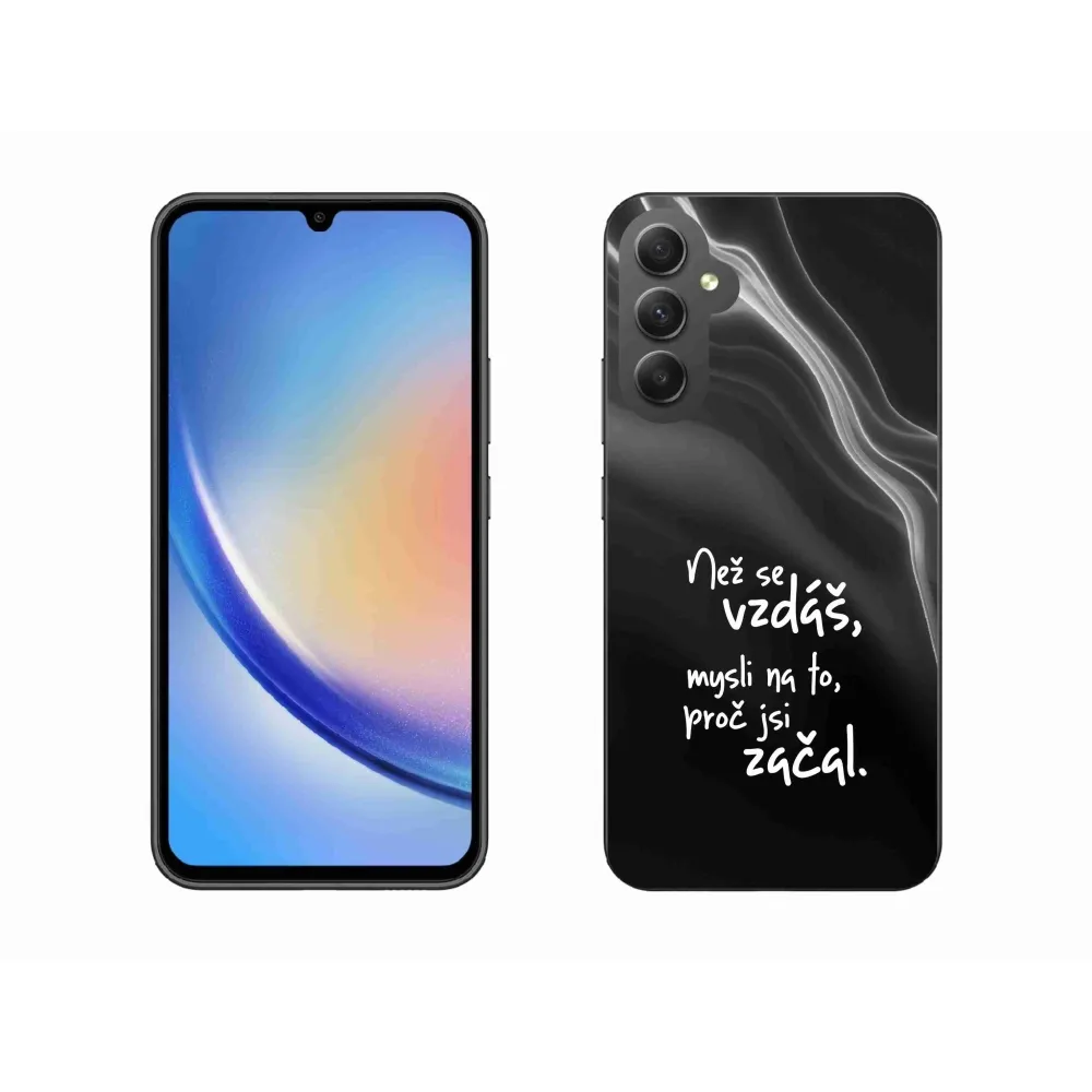 Rugalmas zselés tok mmCase kép Samsung Galaxy A34 5G - idézet 2 fekete háttérrel