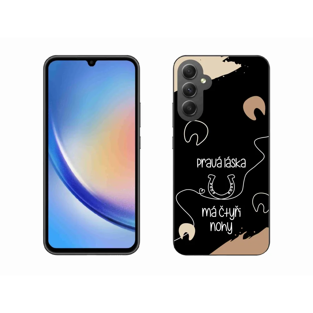 Rugalmas zselés tok mmCase a Samsung Galaxy A34 5G képével - ló motívum fekete háttérrel