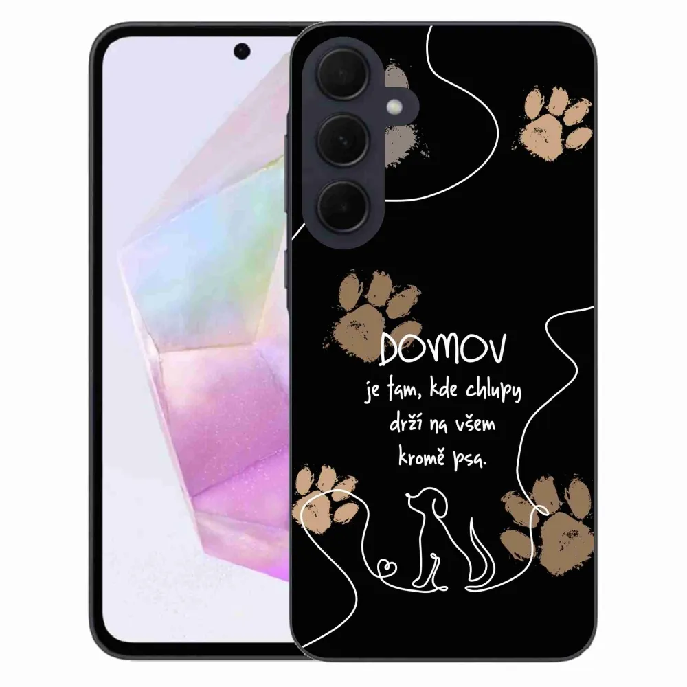 Rugalmas zselés tok mmCase a Samsung Galaxy A35 5G képével - kutya motívum fekete háttérrel