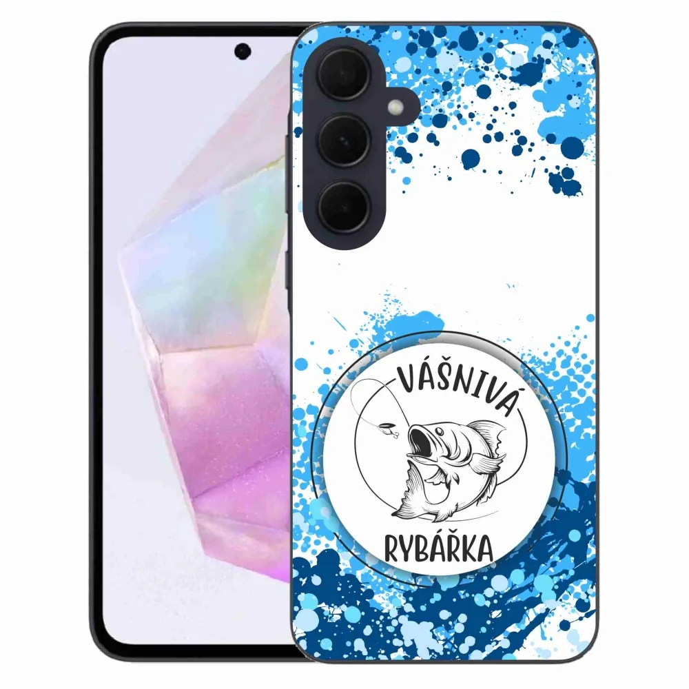 Rugalmas zselés tok mmCase a Samsung Galaxy A35 5G képével - szenvedélyes halásznő fehér háttérrel