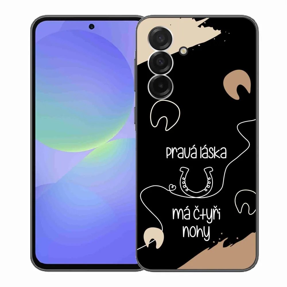 Rugalmas zselés tok mmCase a Samsung Galaxy A36 5G képével - ló motívum fekete háttérrel