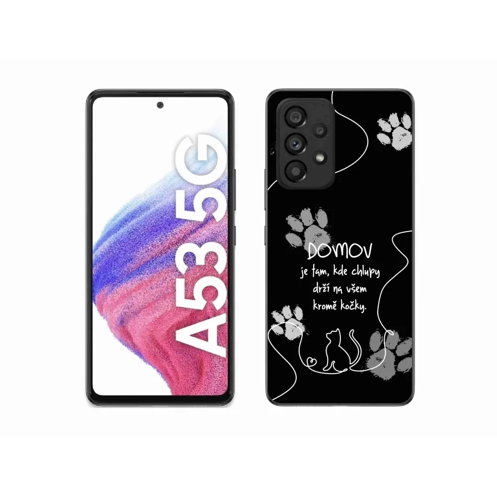 Rugalmas zselés tok mmCase kép Samsung Galaxy A53 5G - macska motívum fekete háttérrel