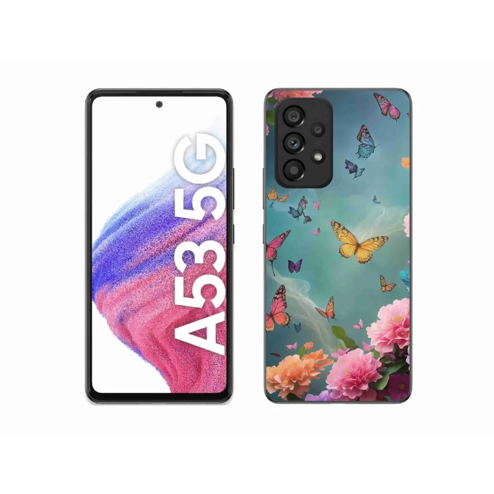 Rugalmas zselés tok mmCase kép a Samsung Galaxy A53 5G - színes virágok és pillangók