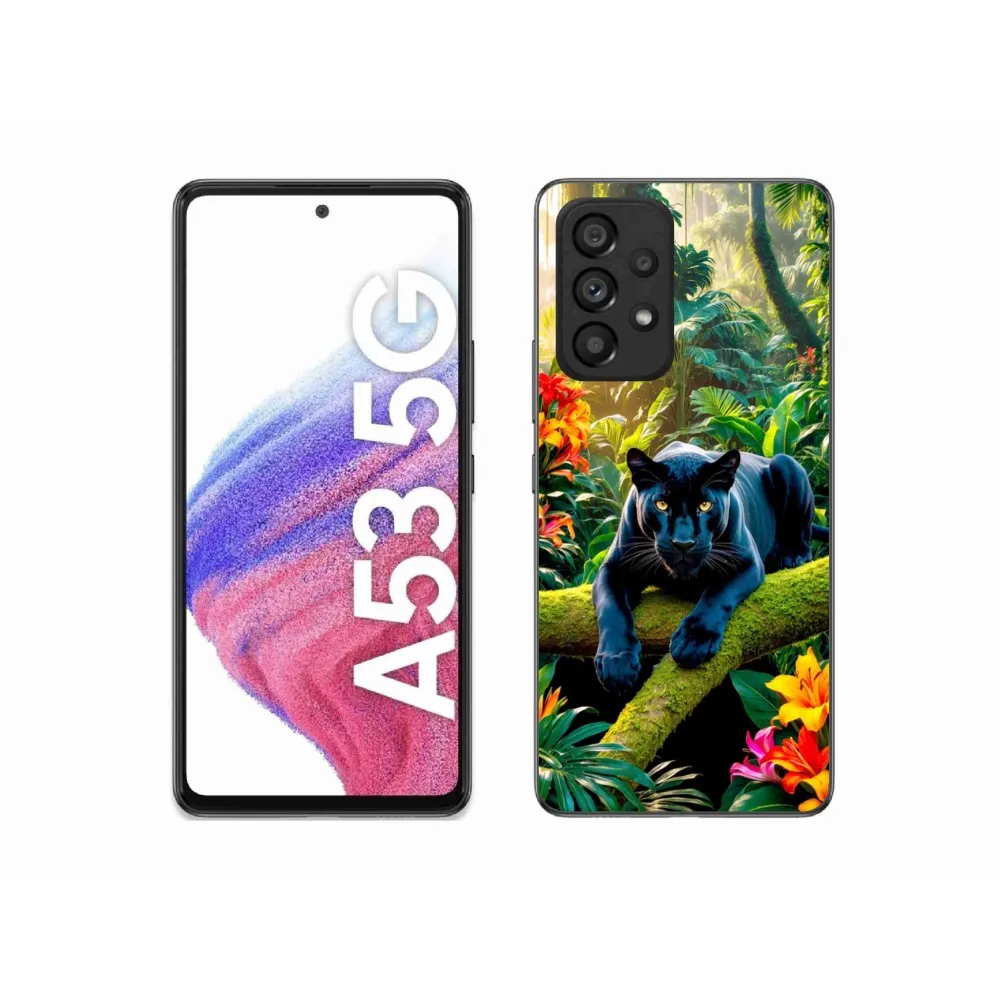 Rugalmas zselés tok mmCase a Samsung Galaxy A53 képével - fekete párduc a dzsungelben