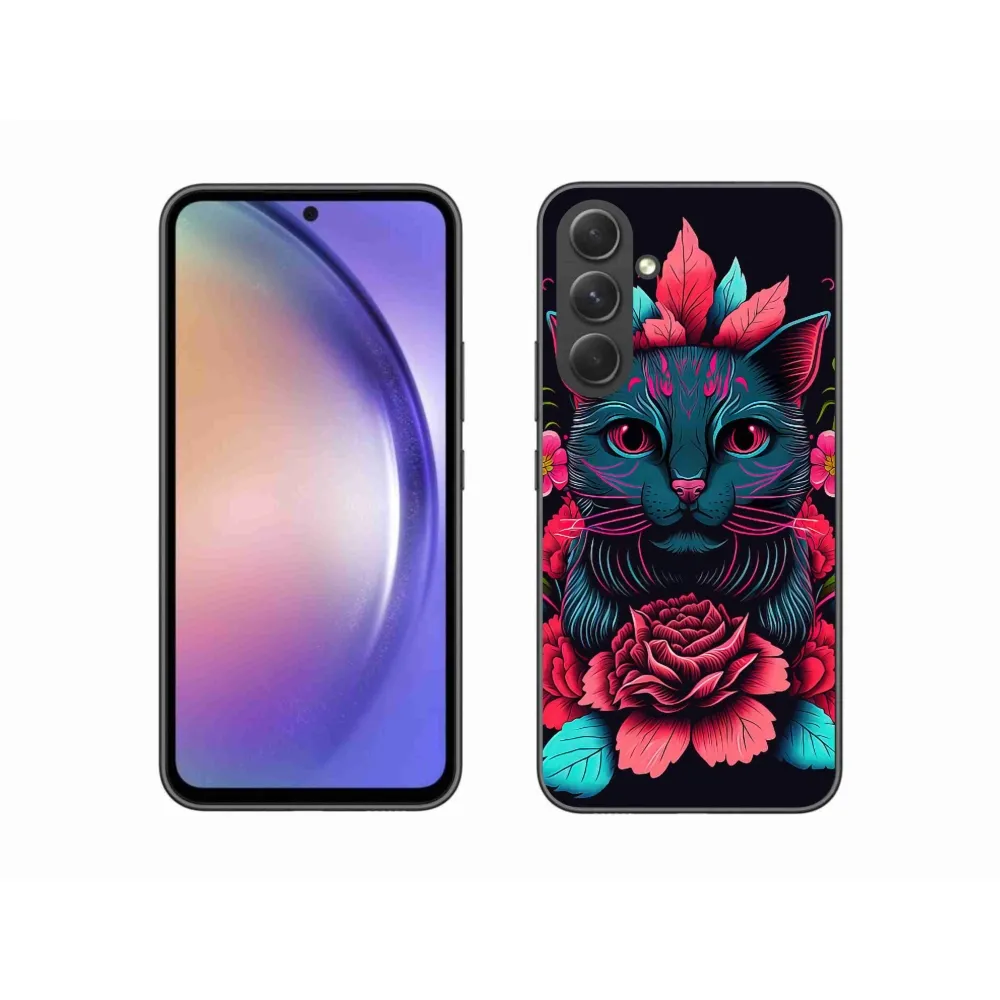 Rugalmas zselés tok mmCase a Samsung Galaxy A54 5G képével - virágok és macska