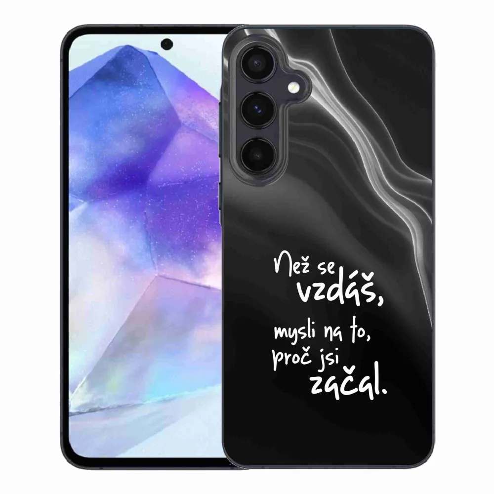 Rugalmas zselés tok mmCase kép Samsung Galaxy A55 5G - idézet 2 fekete háttérrel