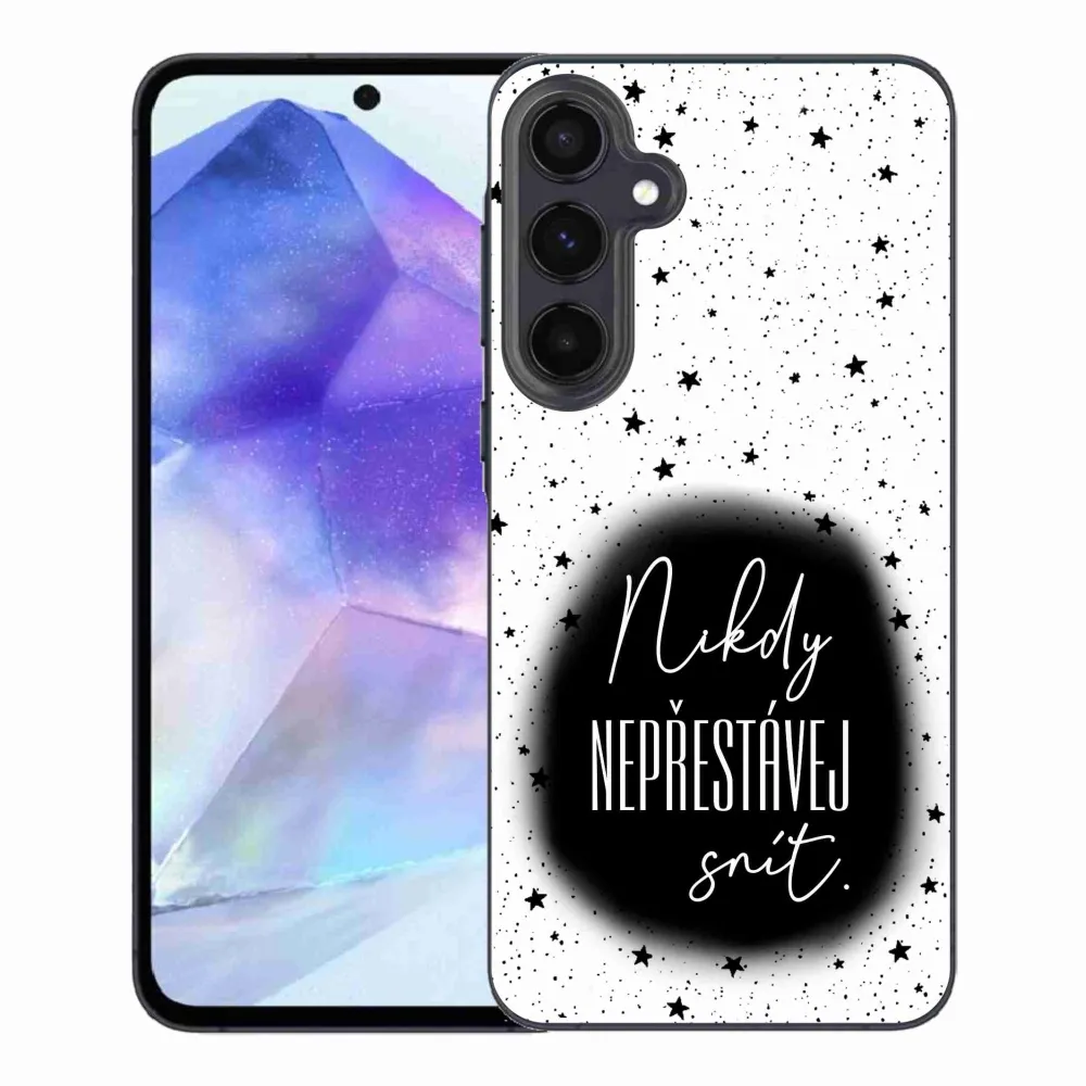 Rugalmas zselés tok mmCase a Samsung Galaxy A55 5G képével - idézet 1 fekete-fehér háttérrel