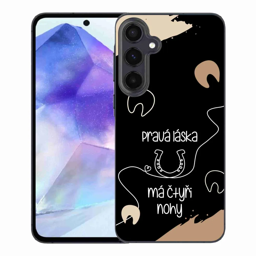 Rugalmas zselés tok mmCase a Samsung Galaxy A55 5G képével - ló motívum fekete háttérrel