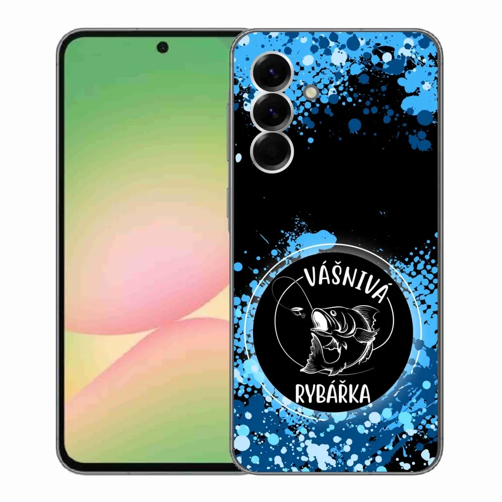 Rugalmas zselés tok mmCase kép Samsung Galaxy A56 5G - szenvedélyes halásznő fekete háttérrel