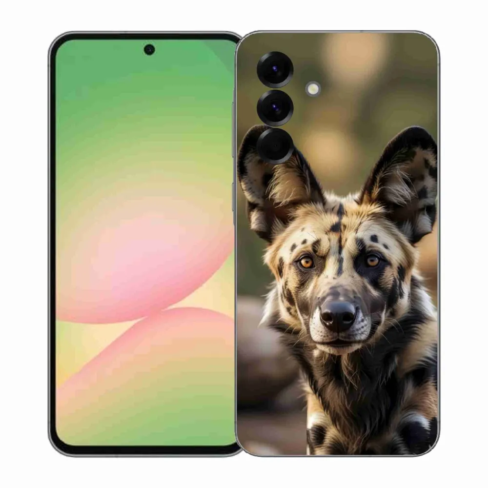 Rugalmas kesztyű tok mmCase a Samsung Galaxy A57 5G képével - afrikai vadkutya