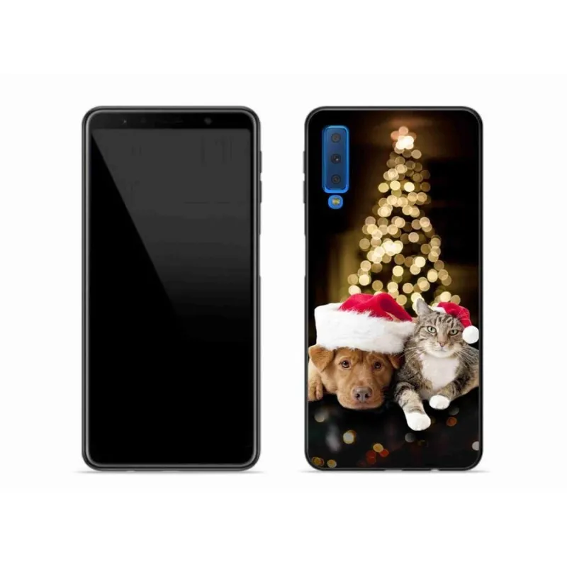 Gél borítás mmCase Samsung Galaxy A7 (2018) - Karácsonyi kutya és macska