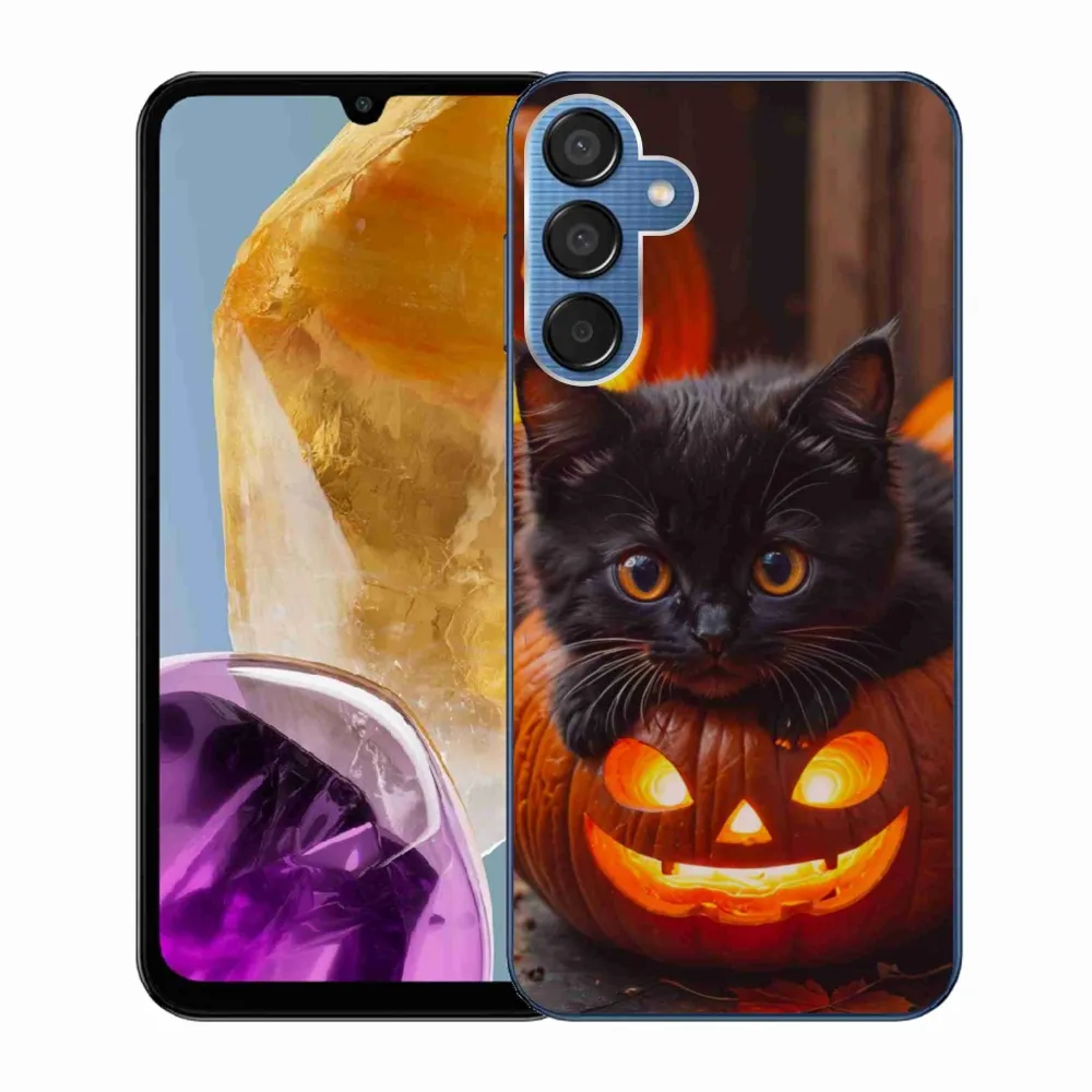Gél borítás mmCase Samsung Galaxy M15 5G - cica és tök - Samsung Galaxy M15 5G számára