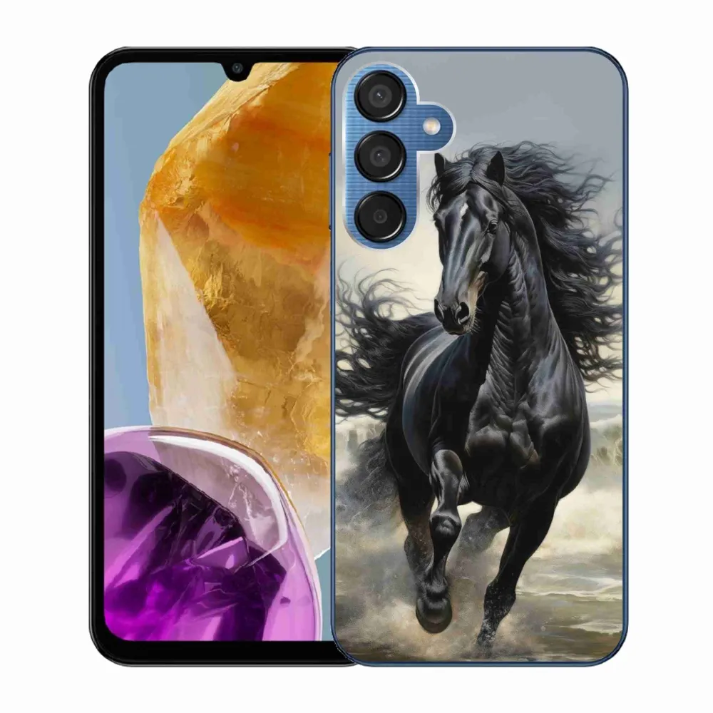 Rugalmas kesztyű tok mmCase kép Samsung Galaxy M15 5G - futó fekete ló - Samsung Galaxy M15 5G - futó fekete ló