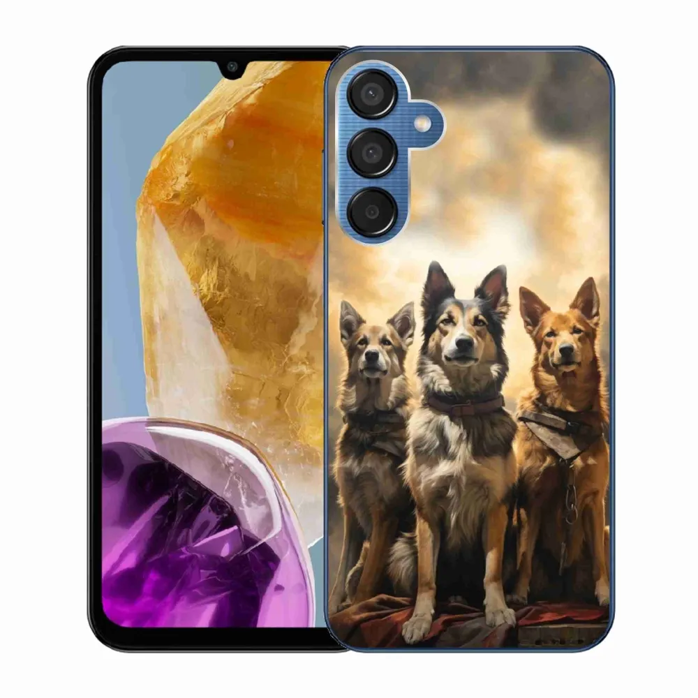 Rugalmas zselés tok mmCase a Samsung Galaxy M15 5G képével - három kutya