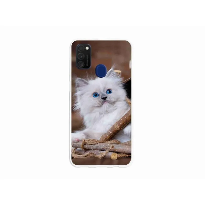 Gél borítás mmCase Samsung Galaxy M21 készülékhez - fehér cica