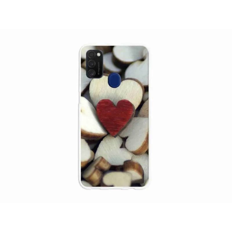 Gél borítás mmCase Samsung Galaxy M21 készülékhez - gravírozott piros szív