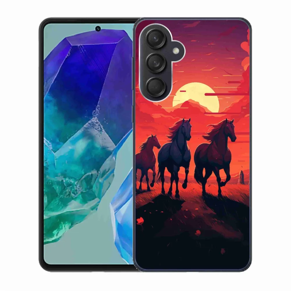 Gél borítás mmCase Samsung Galaxy M55 5G - lovak és naplemente
