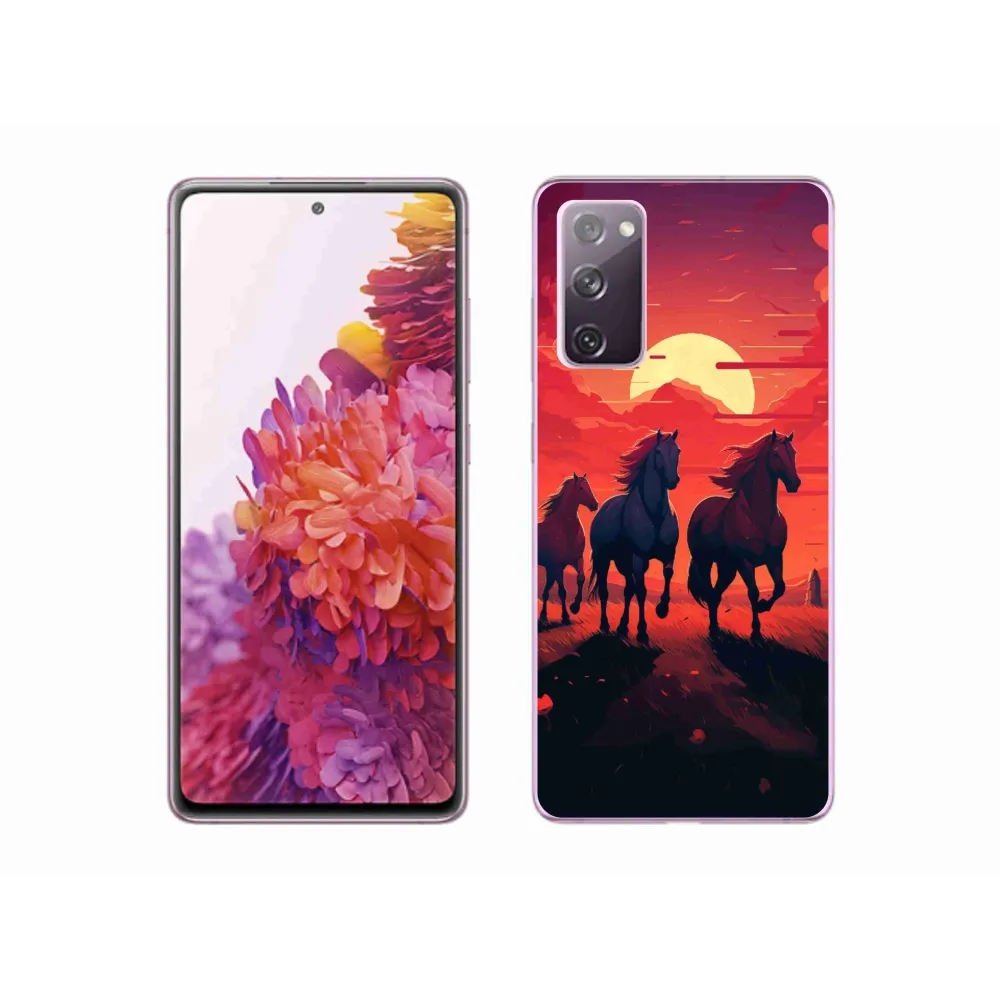 Rugalmas gél tok mmCase a Samsung Galaxy S20 FE képével - lovak és naplemente