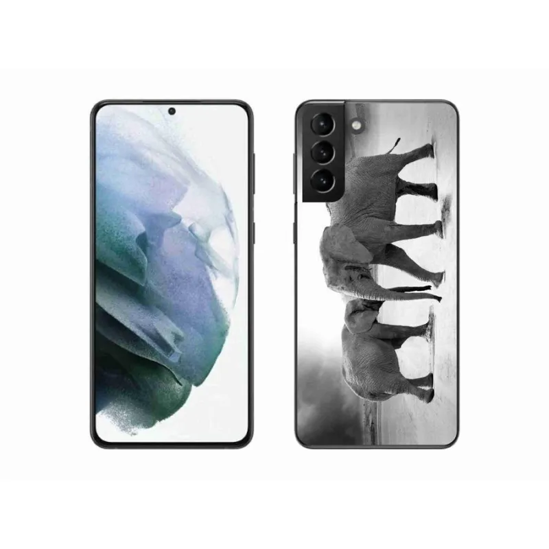 Gél borítás mmCase Samsung Galaxy S21 Plus készülékhez - fekete és fehér elefántok