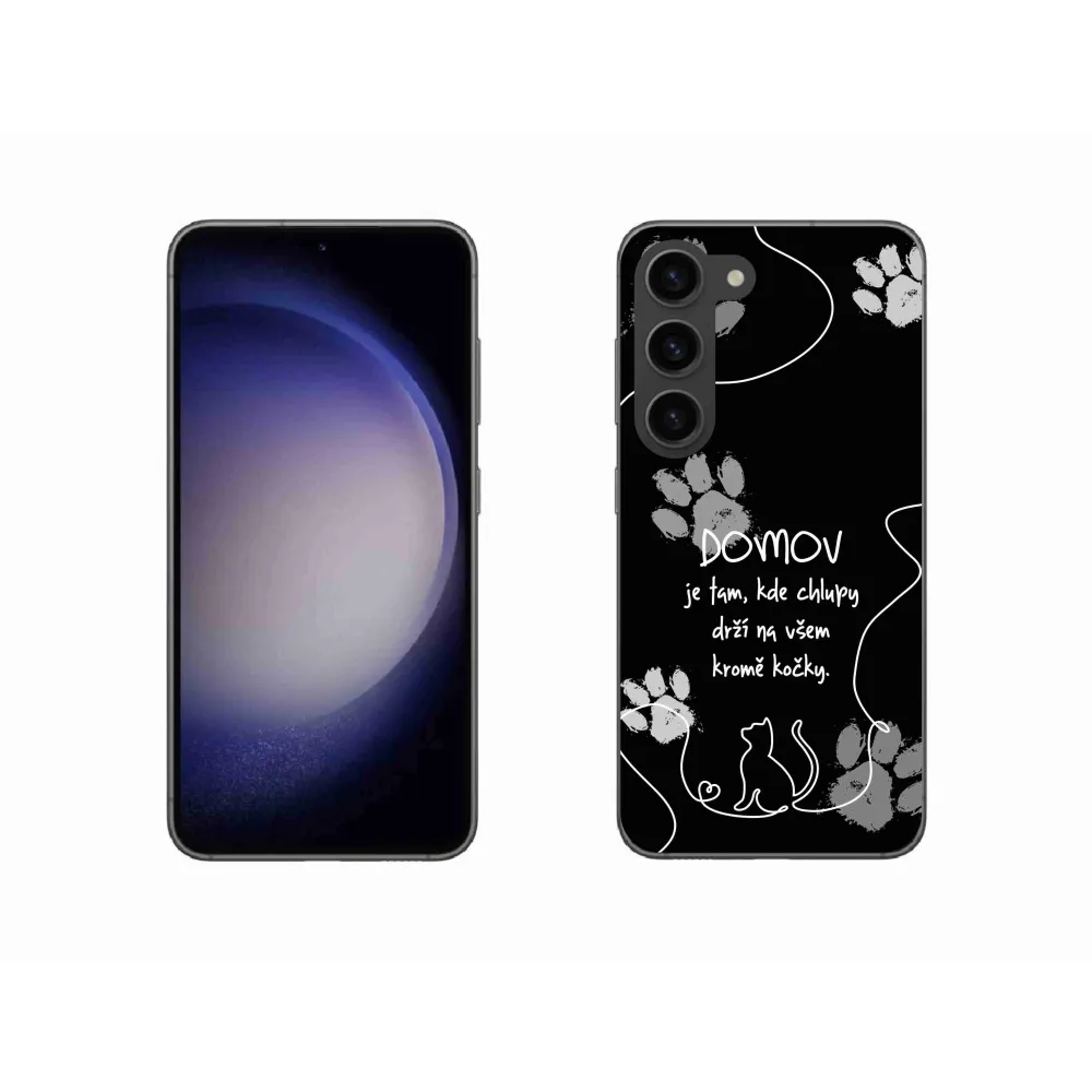 Átlátszó zselés tok mmCase kép Samsung Galaxy S23 5G - macska motívum fekete háttérrel