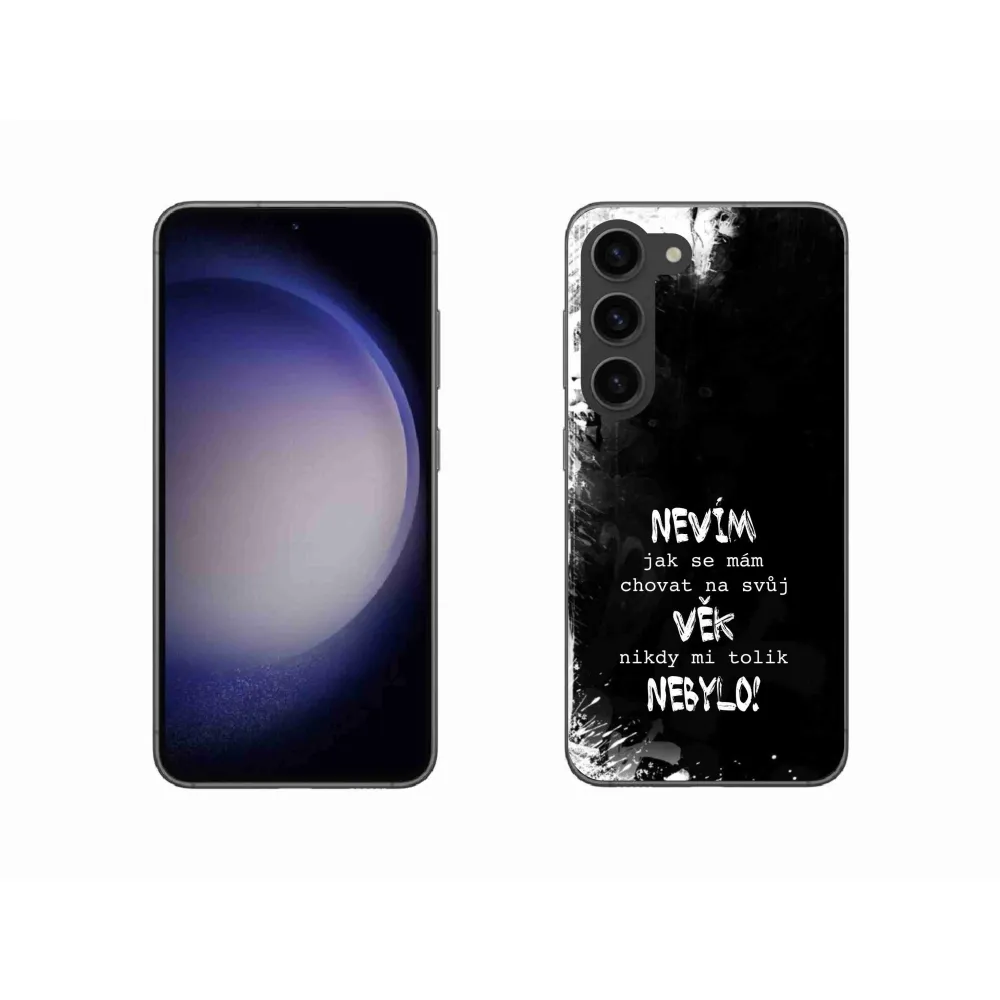 Átlátszó zselés tok mmCase kép Samsung Galaxy S23 5G - vicces szöveg 14 fekete háttérrel
