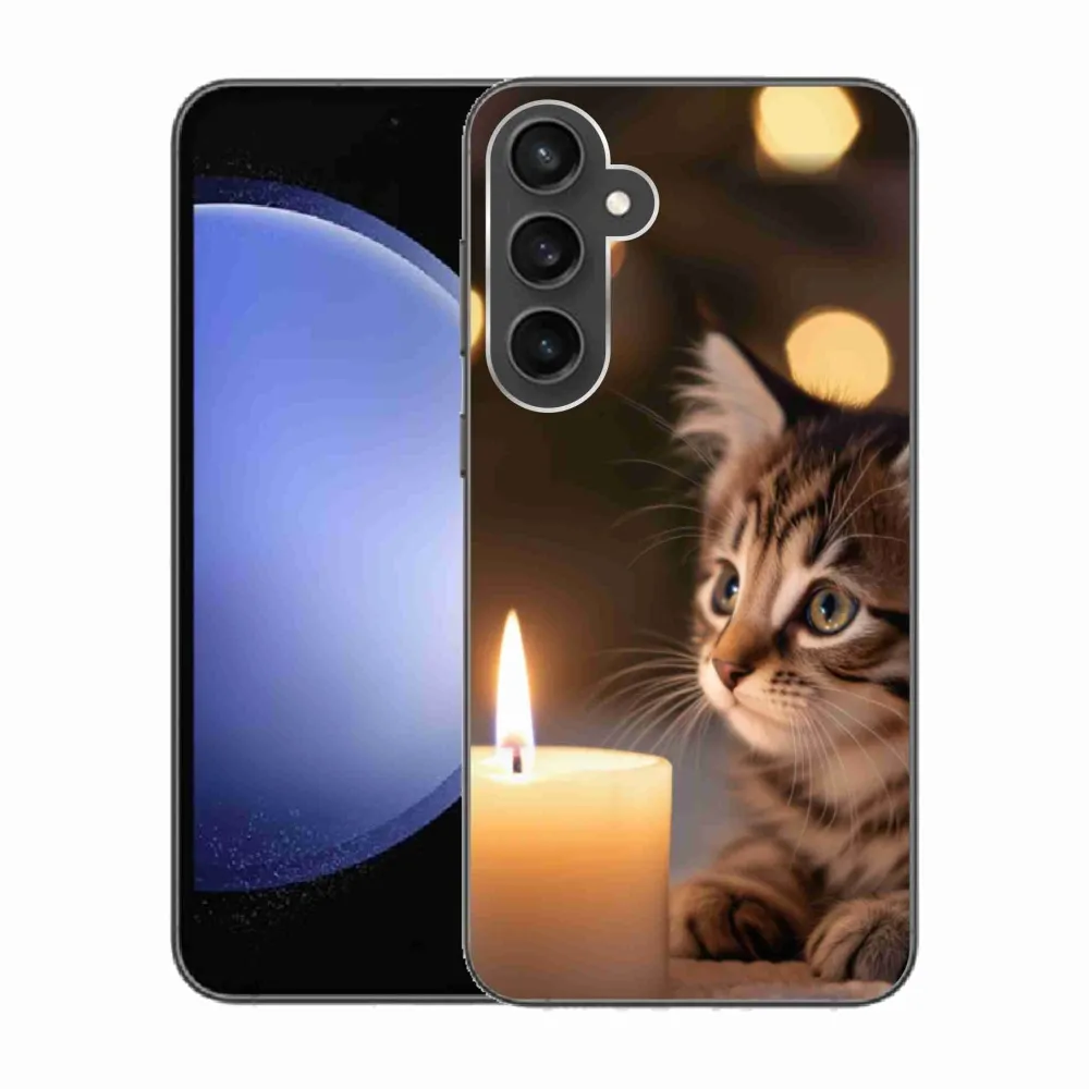 Rugalmas zselés tok mmCase a Samsung Galaxy S23 FE képével - cica és gyertya