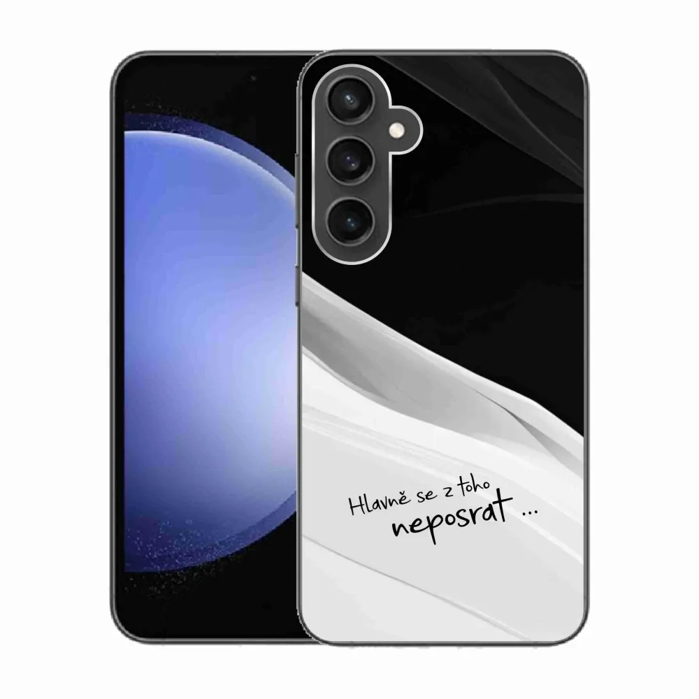 Rugalmas zselés tok mmCase a Samsung Galaxy S23 FE képével - vicces szöveg 13 fekete-fehér háttérrel